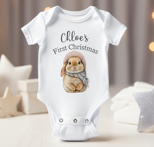 Personalised Baby Bodysuit with My First Christmas Bunny Design