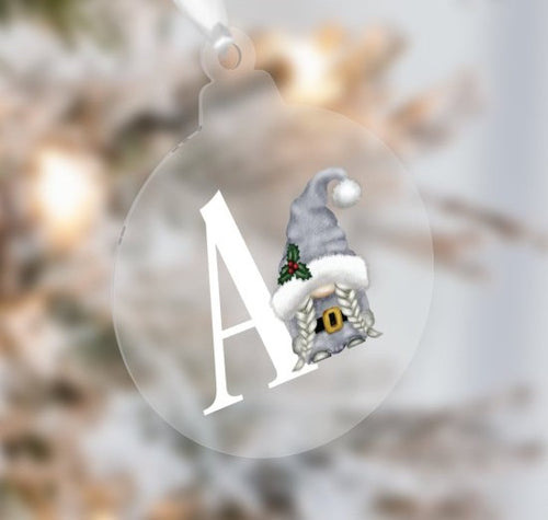 Personalised Initial Christmas Bauble with Grey Gnome Design