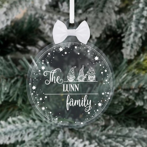 Personalised Gnome Family Name Star Border Christmas Bauble