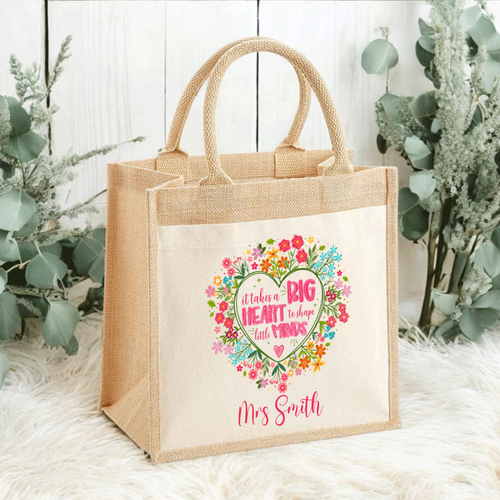Personalised Teacher Jute Tote Bag - Big Heart, Little Minds