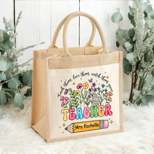 Personalised Teacher Jute Tote Bag - Watch Them Grow