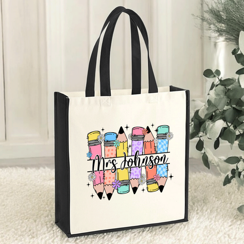 Personalised Teacher Tote Bag - Pastel Pencil Parade