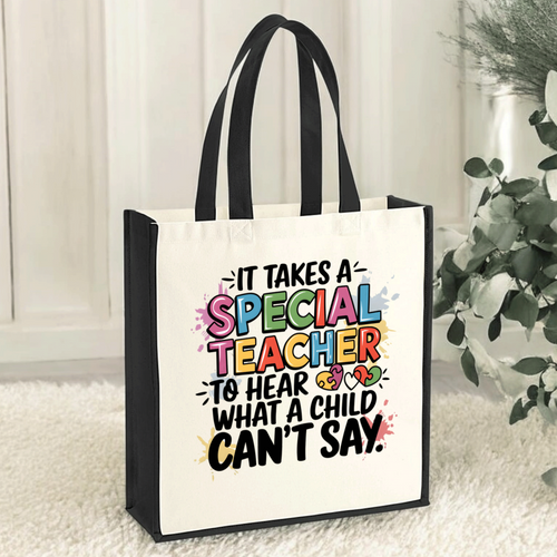 Puzzle Heart Teacher Tote Bag – “It Takes a Special Teacher” Quote Bag