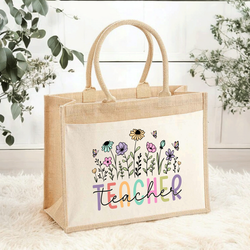 Pastel Teacher Jute Tote Bag - Wildflower Whisper