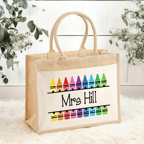 Personalised Teacher Jute Tote Bag - Crayon Brights