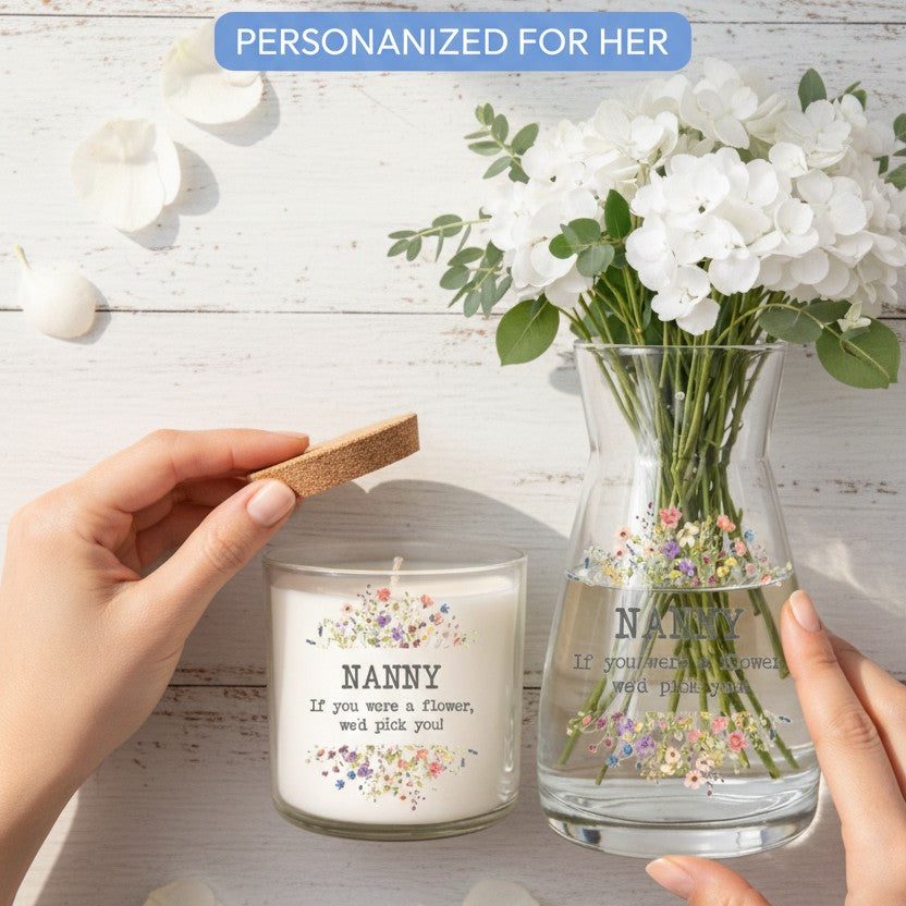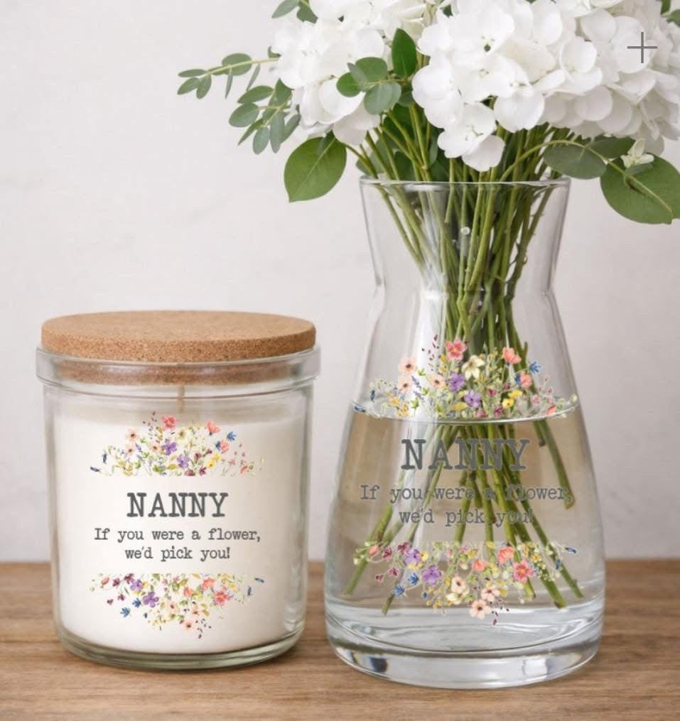 Perfect for Mother’s Day, birthdays or appreciation gifts, this elegant set combines both beauty and practicality. The candle creates a cosy, relaxing atmosphere while the coordinating vase provides a stunning display for fresh or artificial flowers. The design can be personalised for Mum, Mom, Mother, Nan, Nana, Nanny, Grandma, Granny, Great Nan or any cherished loved one.